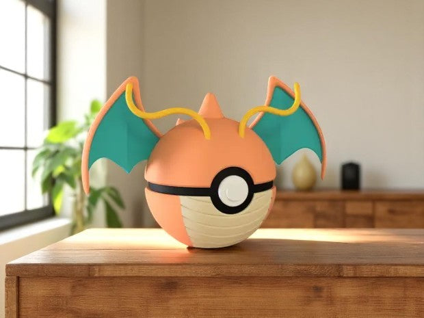 #0149 -Dragonite ball - "It can circle the globe in just 16 hours. It is a kindhearted Pokémon that leads lost and foundering ships in a storm to the safety of land." Dex Entry, Emerald